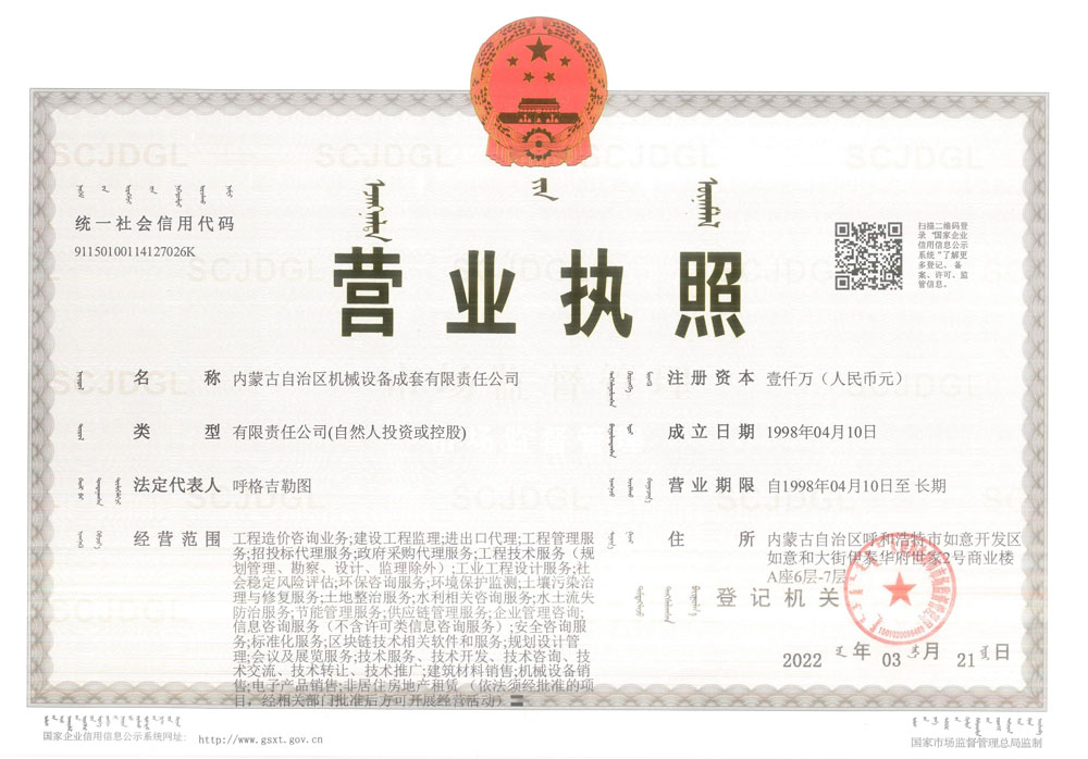 內蒙古自治區機械設備成套有限責任公司營業執照